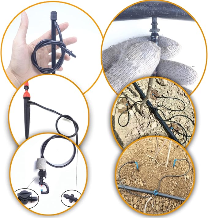 - โถ ๐ ๐๐ ๐๐๐๐๐๐๐๐๐๐: Irrigation tubing comes in different sizes, lengths, and thicknesses to suit different irrigation needs. It is typically made from high-quality, UV-resistant materials that can withstand exposure to sunlight and harsh weather conditions. Tips: Put the drip irrigation hose into HOT water, for 10 seconds before assembling.