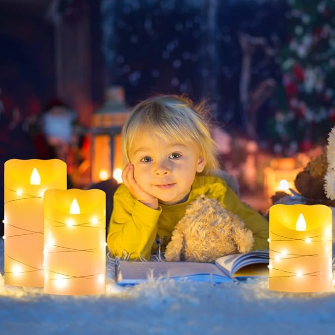 Flameless Flickering Candle, Pillar Candle,with Embedded String Lights,3 Pack LED Romantic Candle with Remote Control, Battery Operated Real Wax, Ideal for Wedding, Home decorand Holiday (Ivory)