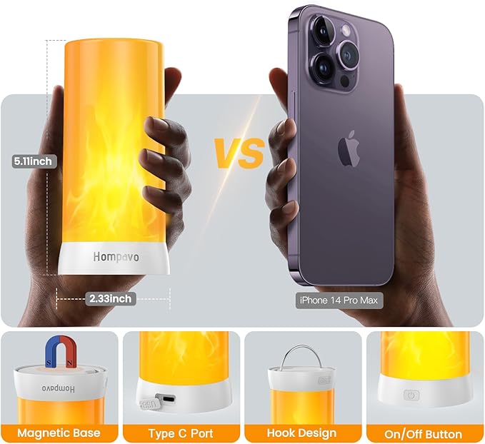 - 【After-sale Service】 Buy with confidence, as our LED flame light is tested to last. Hompavo supports 720-day money back or replacement for any product issue. We’re certain your flame lights can handle the test of time in both durability and functionality.