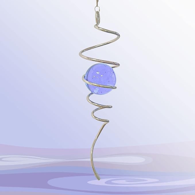 - 【Easy To Position】The Spiral can't spin by itself ,if you want to make it spin like the video ,need add 1pc motor (not include) ,or combine it with a wind spinner or any rotatable hanging ornament to help it rotate. Come with 1pc 2 inch colored glass orb(not paint), 1pc silver color spiral tail twister,and 1pc swivel hook accessory, ready to hang and enjoy.