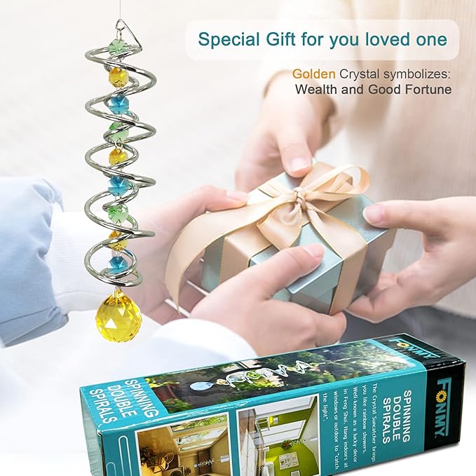 - 【HIGH QUALITY】:Made of stainless steel wire and crystal material, specail double structure spiral tail w/ solid golden color K9 crystal glass ball and raibow color chain crystals , promised good weather resistant and amazing decoration. All FONMY crystal ball made of top crystal glass material with finely crafted, high clarity and cast beautiful rainbows, could turn the sun's rays into many rainbows.