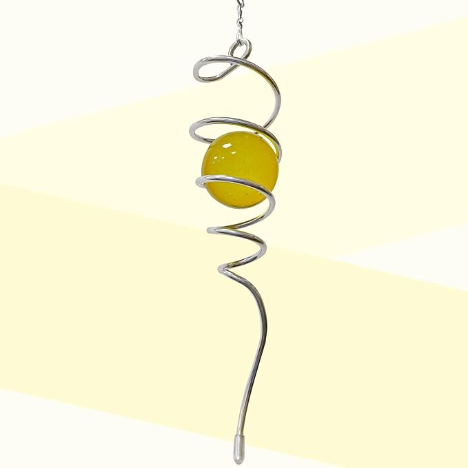 - ✔【Easy to use】The spiral tail wind spinner can't spin by itself ,if you want to make it spin like the video ,need add 1pc motor (not include) ,or combine it with a wind spinner or any rotatable hanging ornament to help it rotate. Come with 1pc 2 inch colored glass orb(not paint),1pc silver gold spiral tail twister,and 1pc swivel hook accessory, ready to hang and enjoy.
