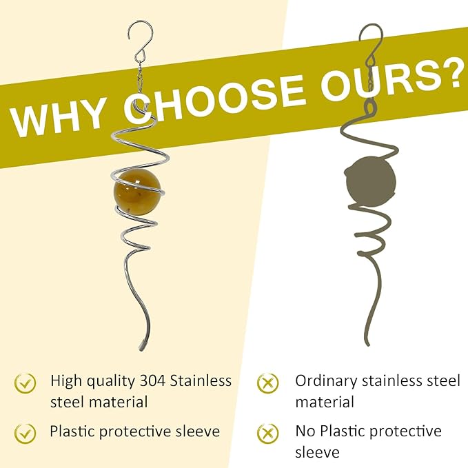 - ✔【Unique visual Design】The wind spinner tail gazing ball spiral is an unique hanging ornament,Also it can help to stabilize 3D wind spinners or yard decor from swing when it rotate.When the spiral tail rotates to the left or rotates to the right , the glass ball seems to move upwards or downward,the glass ball seems to like floating and dancing in air, presenting a magical optical illusion!