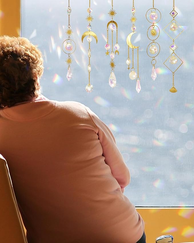 - 【Vibrant Variety】This set includes 6 pieces of colorful crystal sun catchers chain, featuring 6 unique and versatile sun catcher designs to enhance any space. From playful to elegant styles, these suncatchers offer clear and stunning colored light reflections.