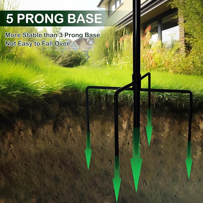 - 5-Prong Base For Extra Support: Our upgraded Shepherd Hooks boast a total of five prongs, providing exceptional support compared to others with fewer prongs. This design ensures a stable and upright posture, firmly rooted in the ground without the risk of toppling over