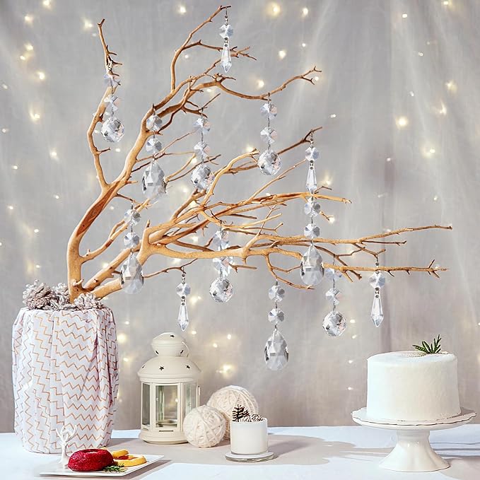 - Versatility Decoration: The pendant crystal chandelier parts for crafts can decorate many occasions, such as dining room, bedroom, wedding lamp,Christmas tree, windows, garden project, and our package has three shapes and sizes to suit different rooms and décor styles.