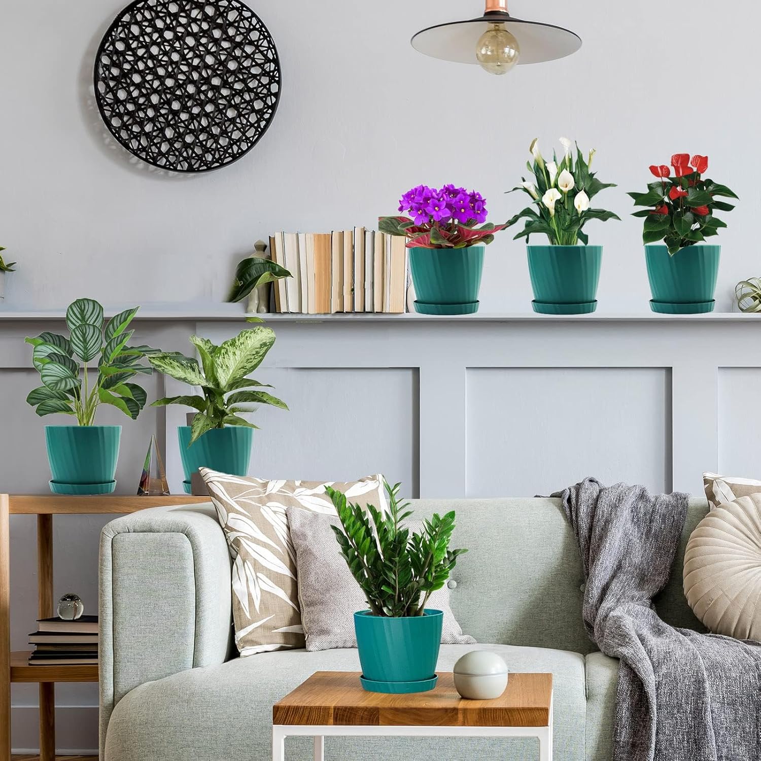 - DECORATION YOUR HOME GARDEN - 6 pack 7 inch planters with grey color, transplant plants to these pots, fill up with mix soil, water and let drain, then place a saucer under each plant. Brings a new stylish home garden. Pefect for hanging up or placed on windowsill, shelf, bedroom, kitchen, office, desktop, garden, etc.