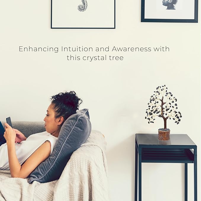 - Black Tourmaline Tree - Crystal tree for positive energy is made of real black tourmaline stones and coupled with a golden wire, which gives a divine look. The tree is 7-8 inches in size, which is the ideal size for the stone money tree. Our crystal trees are made by Indian artisans, which means the crystal money tree is well-shaped and you can even redesign it according to your feng shui home decor.