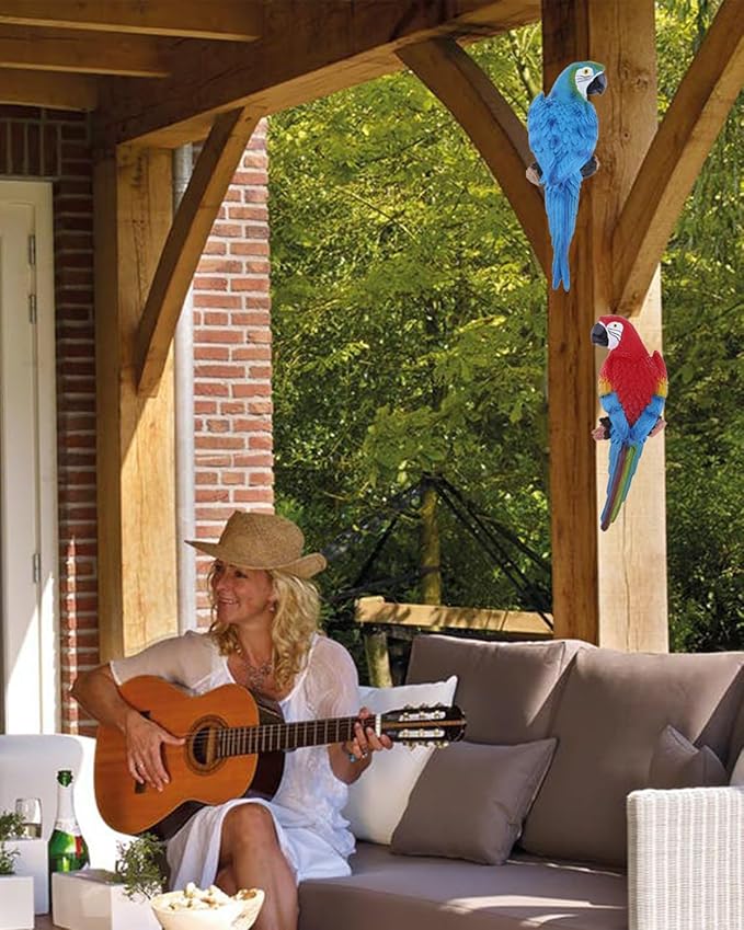 - 【Tropical Style Parrot Statue】- Bright colors and cute lines to draw a super lifelike parrot sculpture, XKFLAUHM parrot sculptures will bring tropical element to your home. You can hang the parrot decoration statues on your bedside, photo wall, patio wall, garden trees, outdoor bar or sunny front porch. The parrot statue bring lots of fun to family or party