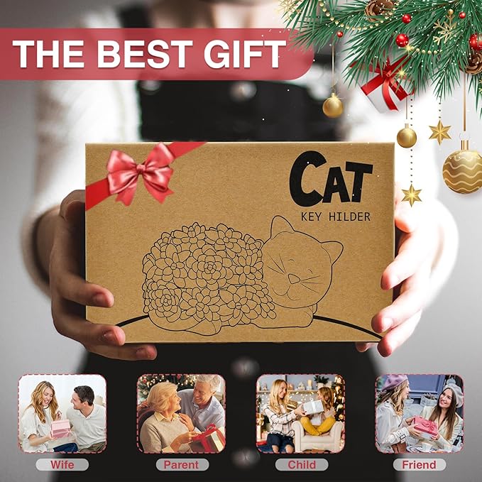 Outdoor Cat Key Hider Statue - Cute Succulent Cat Hide a Key Outdoor Decorative - Small Gift Box for Women, Home Decor & Cat Gifts (Cat)