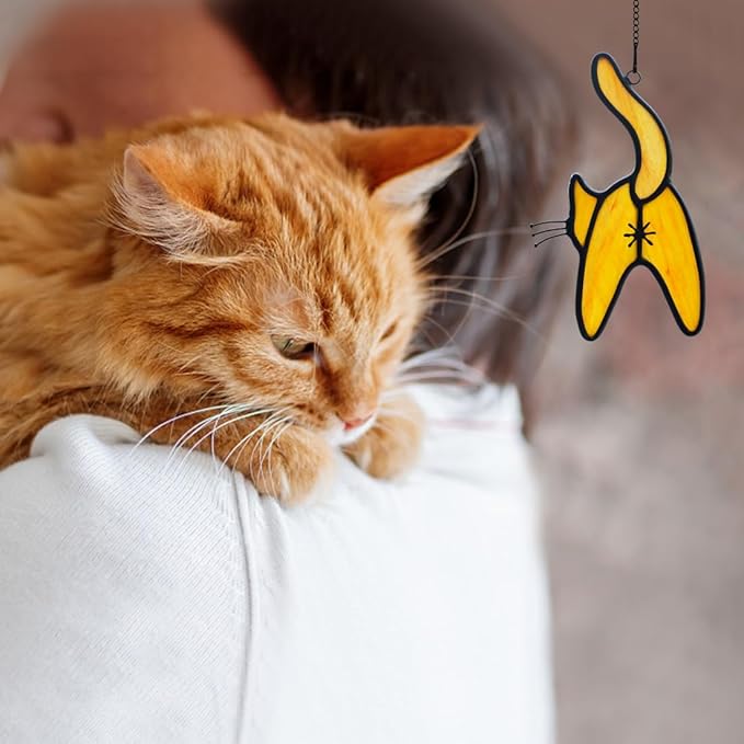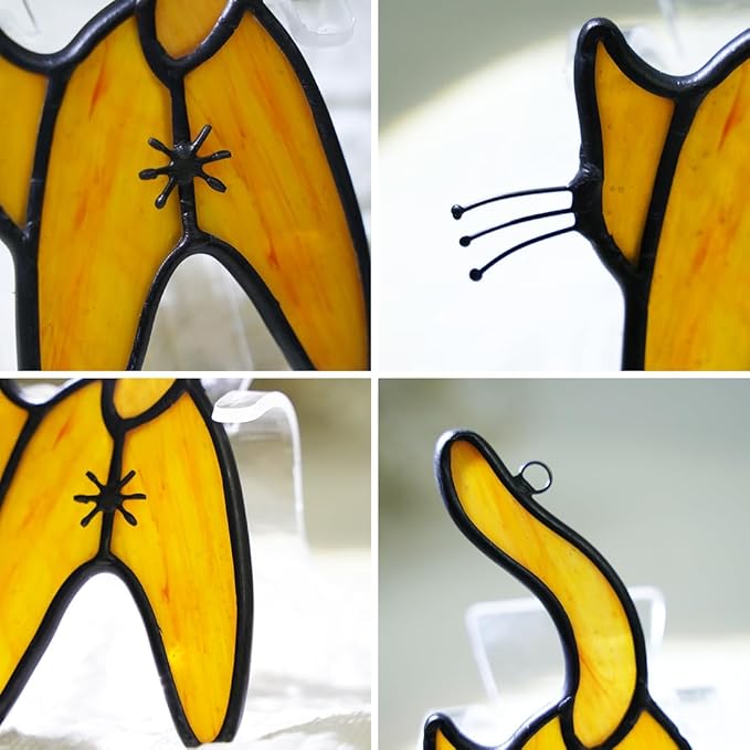 - CAT SUNCATCHER: Our stained glass suncatcher is a beautiful decor item that adds a touch of elegance to any space. Designed in the shape of a cute cat decor, give people a very interesting feeling.It is perfect for hanging in windows, allowing the sunlight to create a stunning display of colors throughout the cat decor. The handmade stained glass creates a translucent effect, adding depth and layers of color to the design.