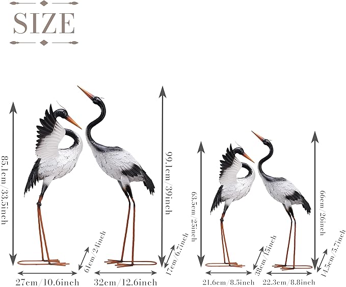 - 【Perfect Size】These cranes are life-sized at 33.5" and 39" tall, making them a striking addition to your space