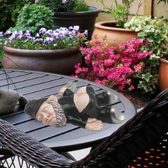 • 【Drunk Dwarf, Lying On The Ground】What a funny drunk gnome! He was drunk and still holding a bottle of wine, lying on the ground, one eye open, one eye closed, showing off his sexy little ass. This cute naughty gnome could add lots of fun atmosphere and fairy tale feel, bring smile to your family and friends.