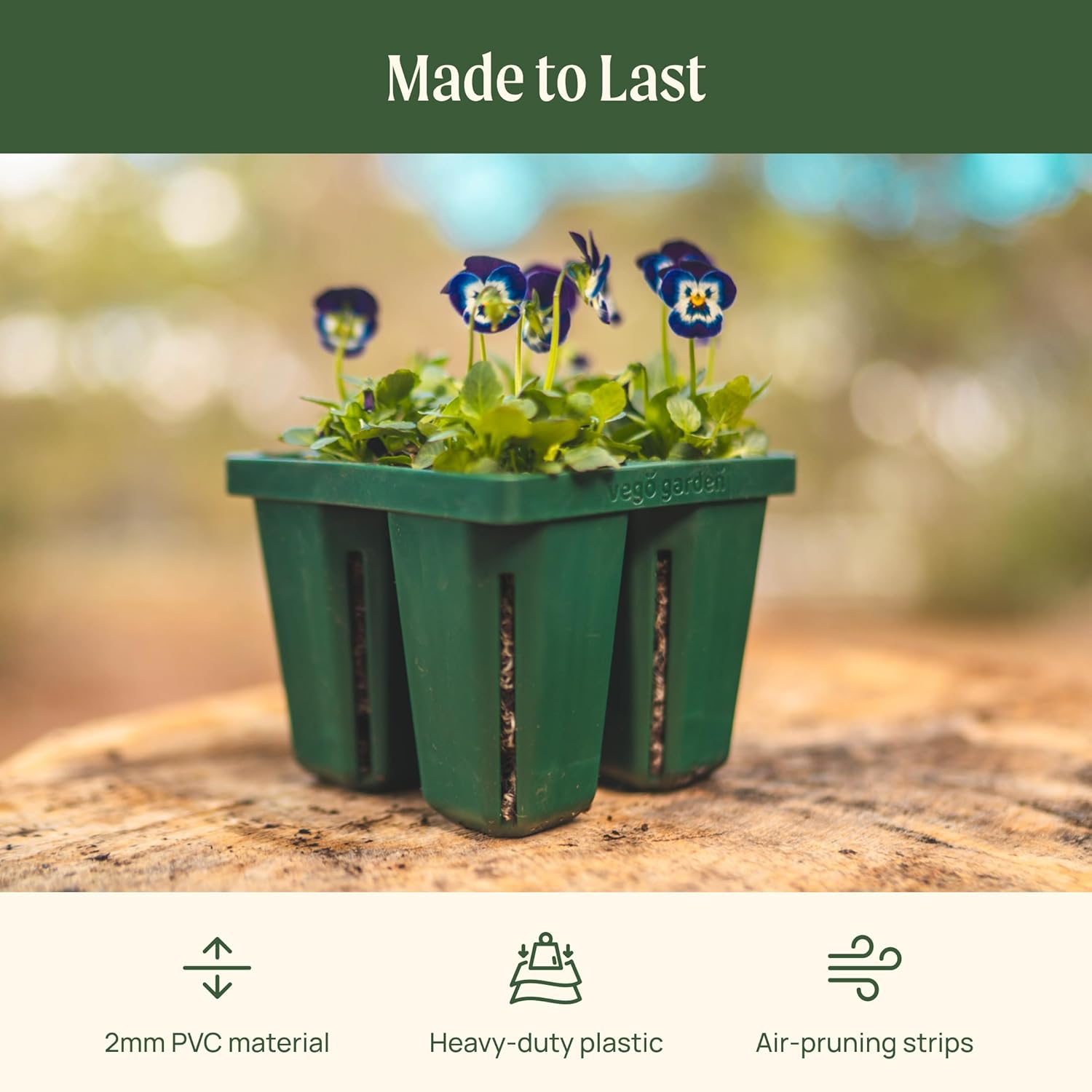 - Vego Garden seedling trays use 2mm PVC material, stronger and not easy to deform, can be reused many times. The thickened bottom edge material that can withstand the pressure, it would not lose soil or soak up too much water, and effectively cultivate seeds