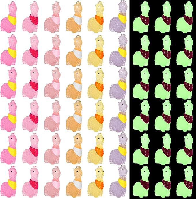 Poen 50 Pcs Resin Miniature Alpaca Figurines Glow in Dark Luminous Mini Animals Alpaca Llama for Garden Landscape Aquarium Dollhouse Decor(Cute Style)