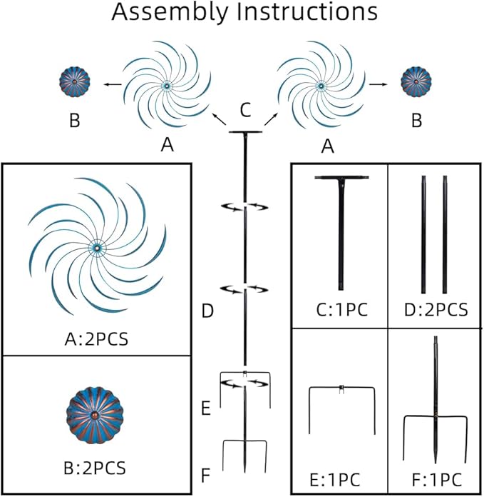 - Easy to Assemble:This wind sculptures is easy to assemble with the instructions and no additional tools.Note please install the pole then install the windmill blades ,which is easier to assemble