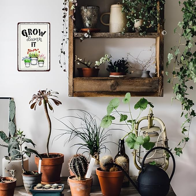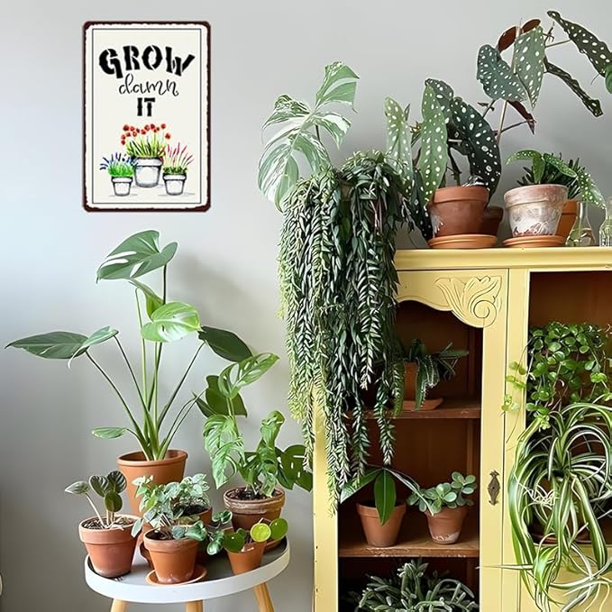 Artlunar Funny Garden Plant Flower Sign Outside Yard Art Decor - Grow Damn It, 12" x 8" (993)