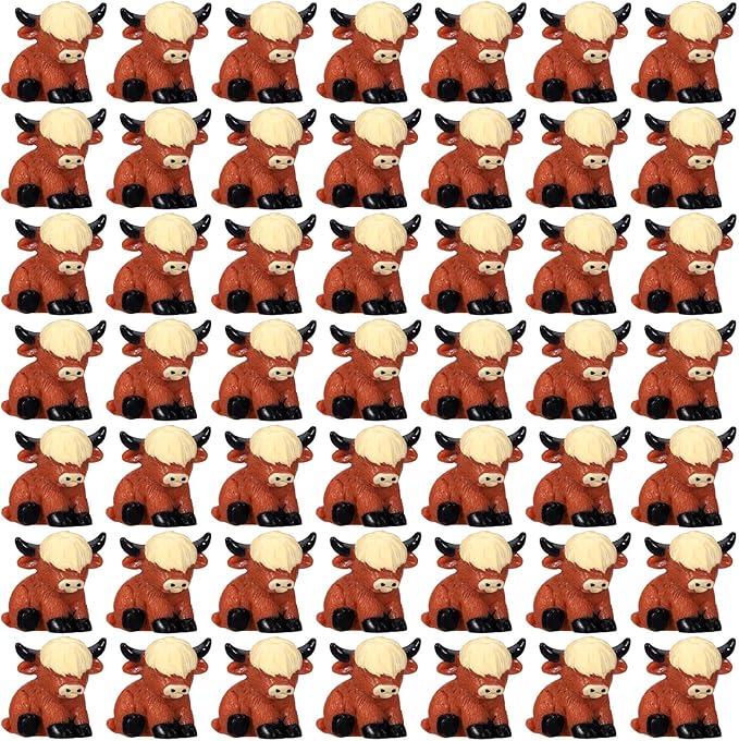 - Quality Material and Generous Quantity: crafted from resin, the highland cow decor is cute and waterproof, ensuring safe usage without worry of them fading or wearing out; The pack includes 50 miniature highland cow statues, providing plenty for all your decorative needs or even for gifting to your loved ones