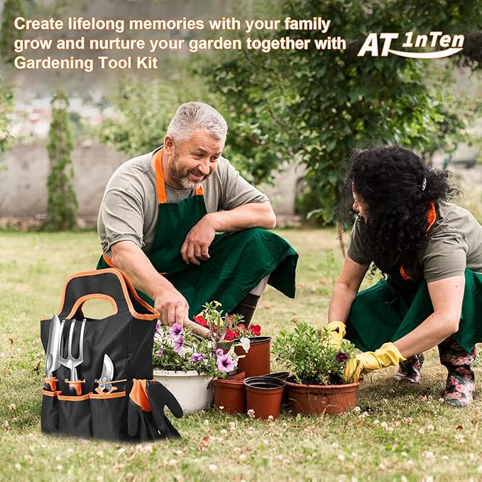 - ππππππππ ππππππ πππππ & ππππππππ ππππ πππ:Upgrade your gardening game with AT1NTEN's 8-pack garden tool set. Say goodbye to cheap, unreliable tools and get everything you need for a perfect garden. The durable material allows you to work in any soil, even hard and gravelly ones, while the non-slip rubber grip ensures comfortable and secure handling for long periods of time. Don't settle for less - with the enlarger tote bag, 15.35*19.3 inch make store a breeze.