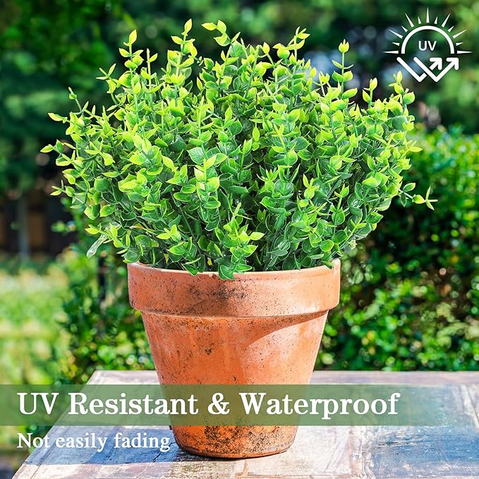 - No Fade - The Fake plants are waterproof and sunscreen and are not easy to fade. They hold their own in full sun and no watering needed and very flexible and realistic to the point they have a soft gentle sway on a windy day