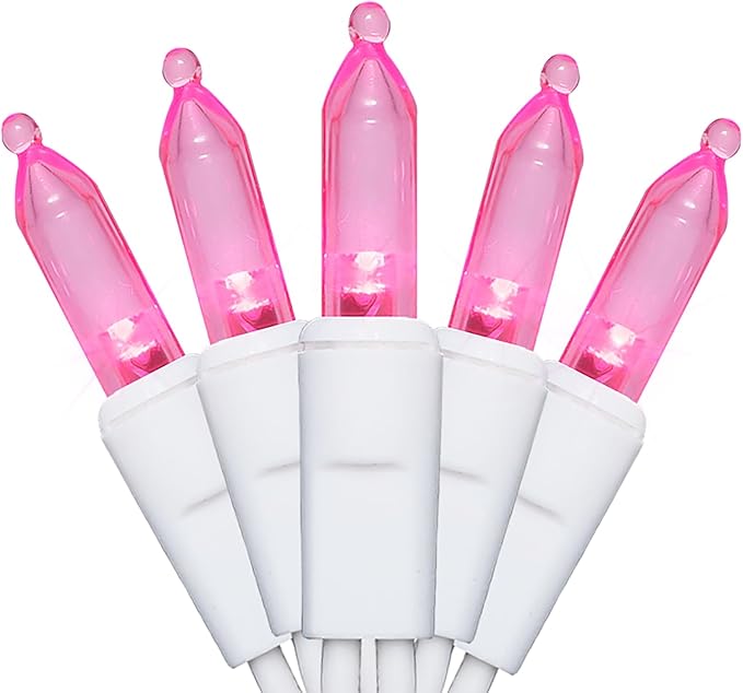 Pink LED Christmas Lights - 35 Count Pink Christmas String Lights for Small Tree, Crafts, Bedroom, Wedding, Indoor and Outdoor Valentines Day Decorations, 11 Feet White Wire, UL Certified, Connectable