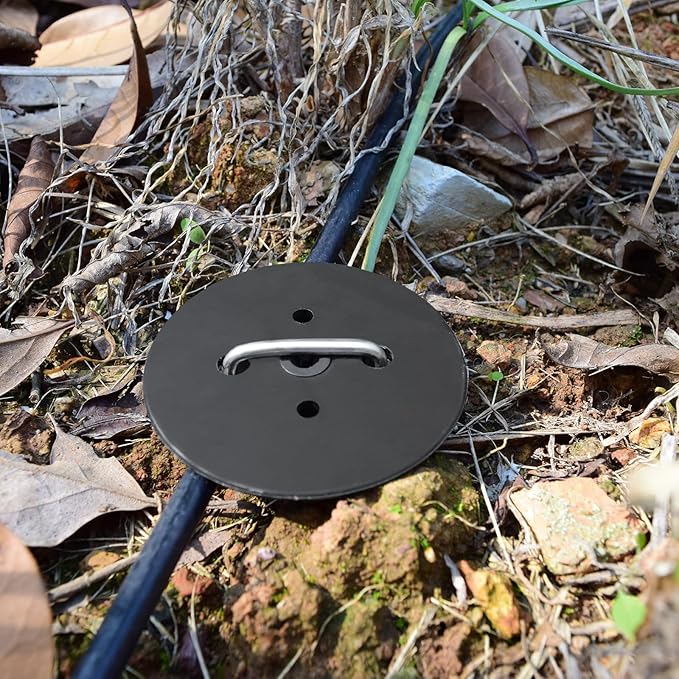 - Packaging and Size: Including 100 x galvanized landscape fabric pins, 100 x round plastic gaskets and 1 x pick hook. The fixing washer can make your project installation firmer, and the pick hook can pull the landscape staples out easily. (Note: To prevent damage to the anti-rust coating on the weed mat pegs, please use a rubber hammer for installation.)Floor mat diameter 2.35”; thickness 2mm, pore diameter 6mm, installation pitch 1”,staples length in 6 inch