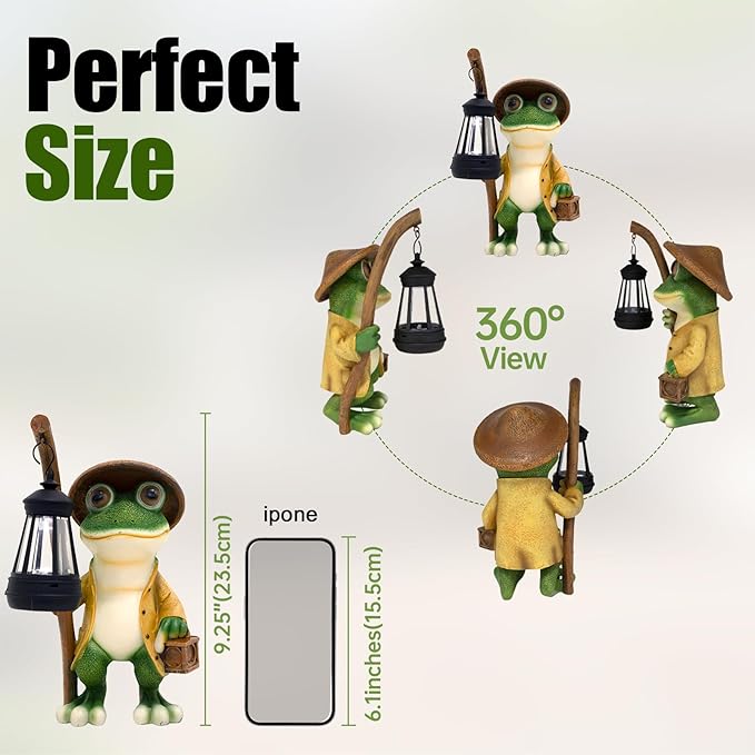 - Garden Frogs Outdoor Decor: Tall 10.4inches it's a decent size so you can read the sign from a distance and it looks so cute day or night. Garden outdoor solar light add a nice atmosphere to your garden. Add ambiance to your garden at night.