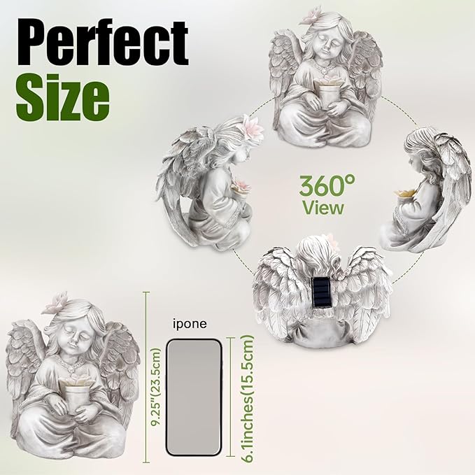 - Solar Angels for Outside Garden: The size of this solar angel statue light exceeds that of the majority available on the market, allowing you to see it from a distance. It looks adorable both day and night. The guardian angel solar lights add a beautiful ambiance to your garden, enhance the atmosphere of your garden at night.