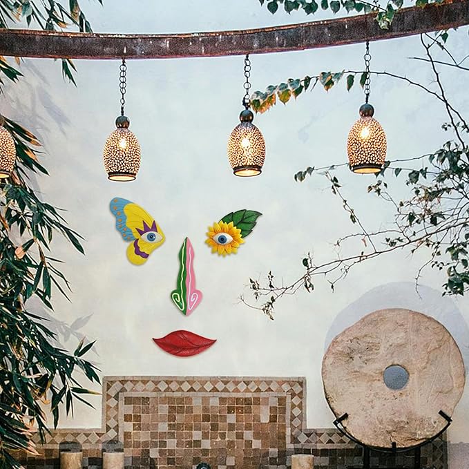 Tree Faces Decor Outdoor,Funny Tree Faces Sculpture,Colorful Fence Decorations Outdoor,Suitable for Yard and Garden Art Décor(1pcs,Colorful Butterfly)