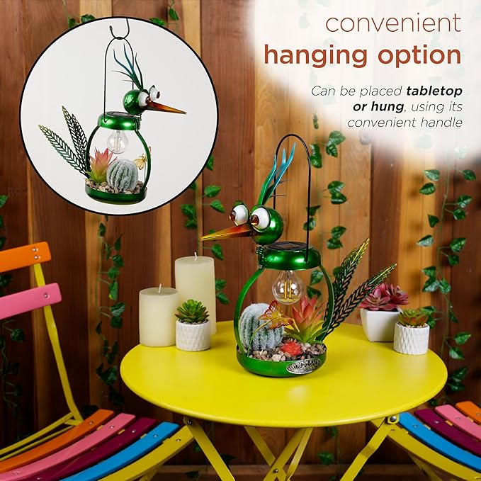 - PERFECT AND COMPACT SIZE: This iron bird lamp measures 16"L x 6"W x 16"H, making it the perfect addition to any flower bed or outdoor display