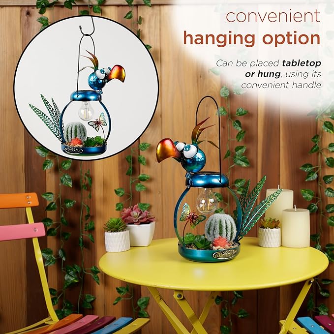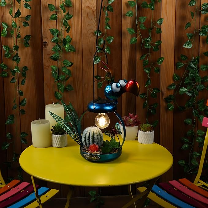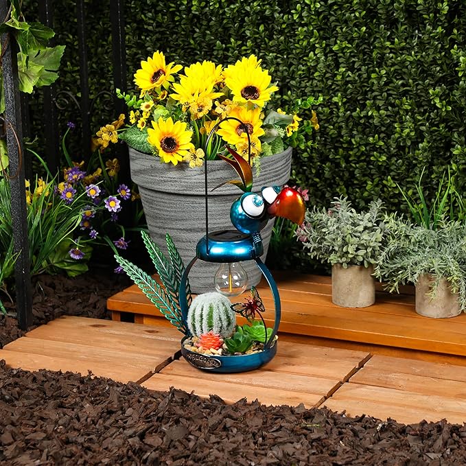 - PERFECT AND COMPACT SIZE: This iron bird lamp measures 16"L x 6"W x 16"H, making it the perfect addition to any flower bed or outdoor display
