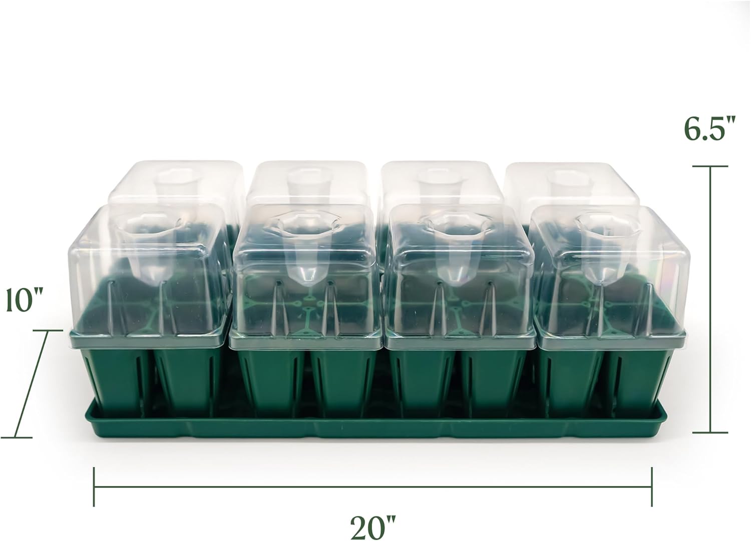 Vego garden Seedling Suite Products, 8 Pack Jumbo Seedling Trays with Seedling Tray Lids and 10" x 20" Bottom Watering Trays