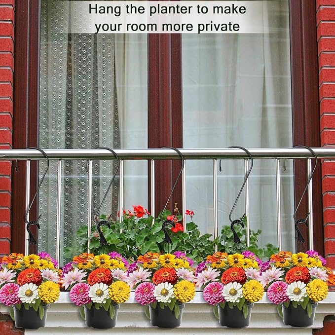 - Wide application: 12 inches hanging plant hooks can be used to hang plants, flower baskets, bird feeders, bird houses, wind chimes, lanterns, and the hanging basket hooks can also be used to hang plants on your balcony to help you block the view from afar and improve the seclusion of your house