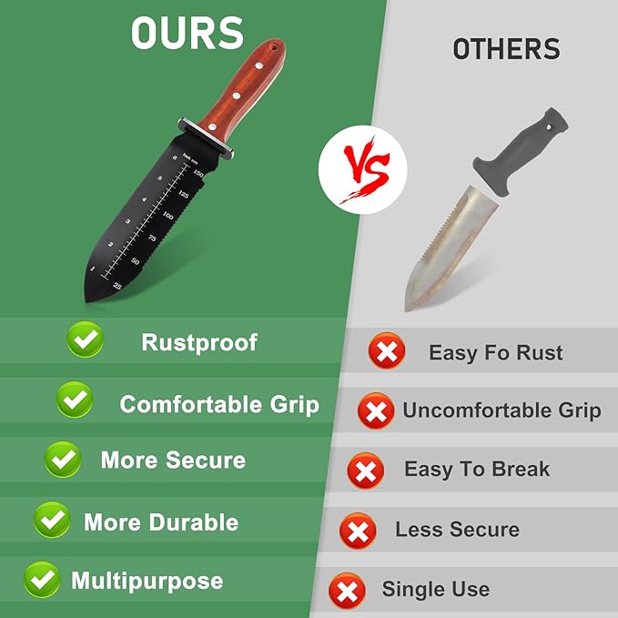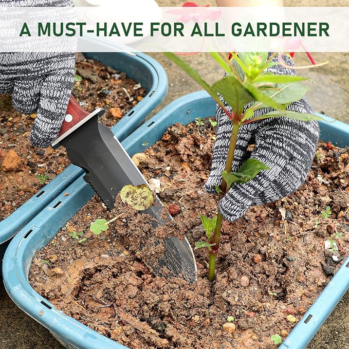 - 【Wonderfully Versatile】garden knife for every job in the garden, use it for digging, transplanting, sawing, cutting, removing, dividing, and even measuring soil depth for planting.