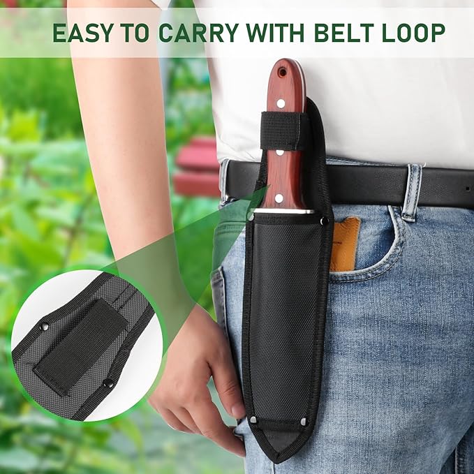 - 【Premium Material】Full length 12.1 inches, 7 inches blade. Made of high-grade Japanese stainless steel with rust-proof blades that extend into a full tang for superb strength. The garden knife is sturdy and will hold up under intense work.