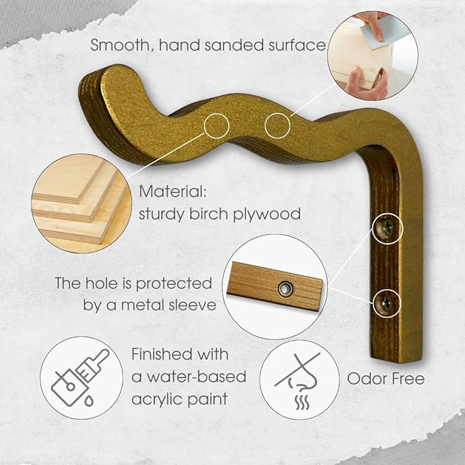 2-Piece Set of Wavy Wooden Wall Planters for Indoor Plants 6 Inch - Natural Plant Hook for Wall Plant, Wind Chimes, Flower Brackets - Durable Bracket Plant Hanger (Bronze)