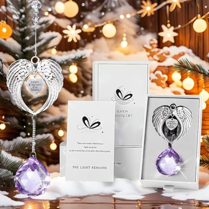 - Grief gift with gift wrap packaging and sympathy card to adds extra care for the people in grief. Pristine white gift box with high-end sponge to protect the crystal sun catcher. There is also a gift card to express sincere concern. A memorial gift to bring warm and happiness for the one who lose child, mother, father, friend or pet.