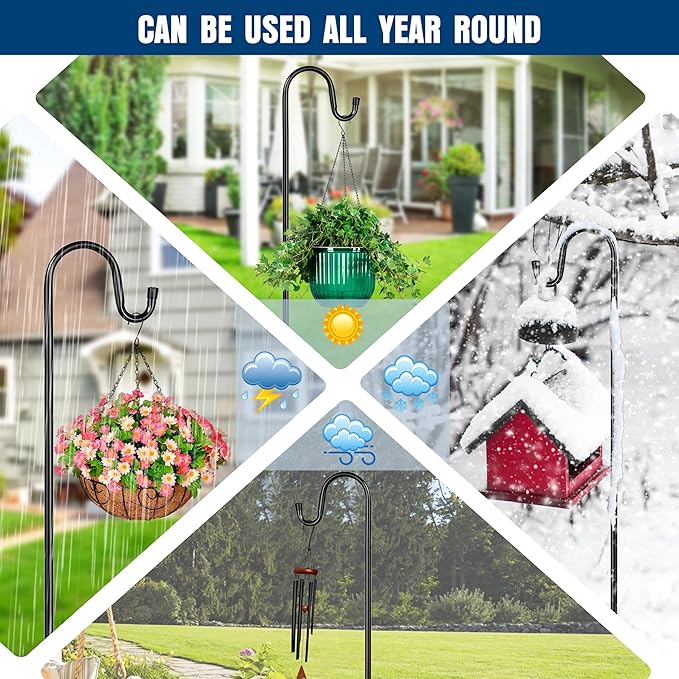 - 【Upgraded in Stability & 5 Base Prongs】Compared to other similar hooks in the market, our heavy duty shepherds hooks have upgraded with 4 extra long and double-forked base prongs to be total 5 prongs which makes it the strongest garden hook in the market and maintain a fixed, upright posture while remaining firmly planted in the ground without easily falling down.