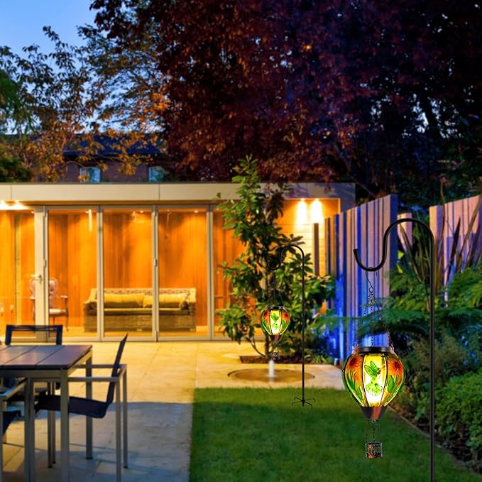 - 【High Quality】Our glass hot air balloon solar lanterns have excellent waterproof performanceand can stand up to any weather. The 18.1-inch solar hot air balloon lantern with flame has an "S" hook, which can be easily hung on the porch, tree, gazebo, balcony or ledge as a beautiful landscape.