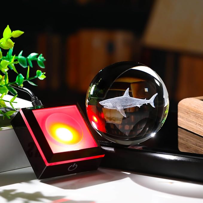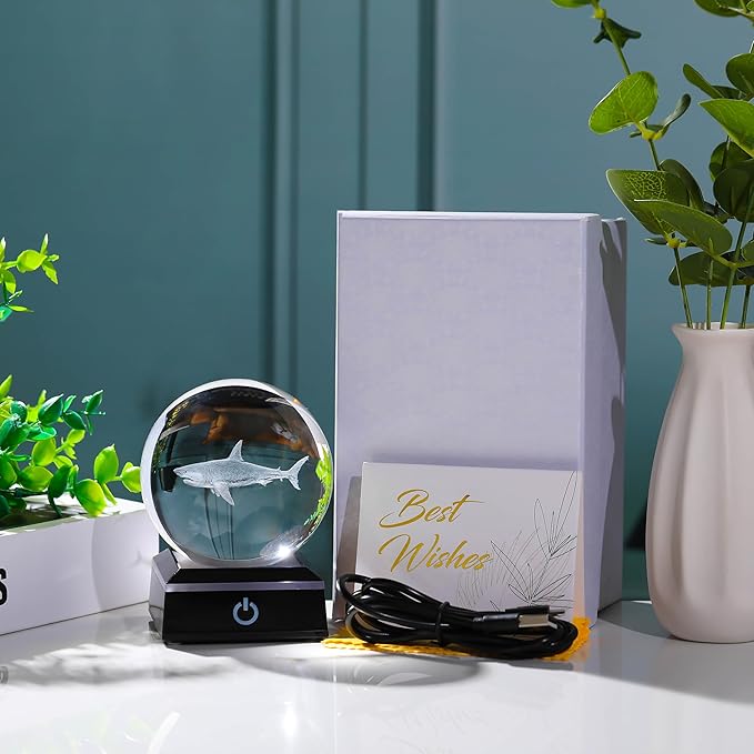 - 🍀Crystal Ball Shark Gifts - Crystal Glass Shark Figurine Decor size: 3.14". Made of HIGH-QUALITY K9 Crystal, Interior images are carved by Advanced 3D Laser Engraving Technology, nice Shark Gifts for mom on XMAS Mothers Day