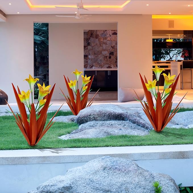 Homight Metal Agave Plant Outdoor Decoration Outdoor Garden Decoration Lily Mexican Yard Art Plant Garden Agave Lily Decorative Garden Gift… (3 Big Yellow Lilies)