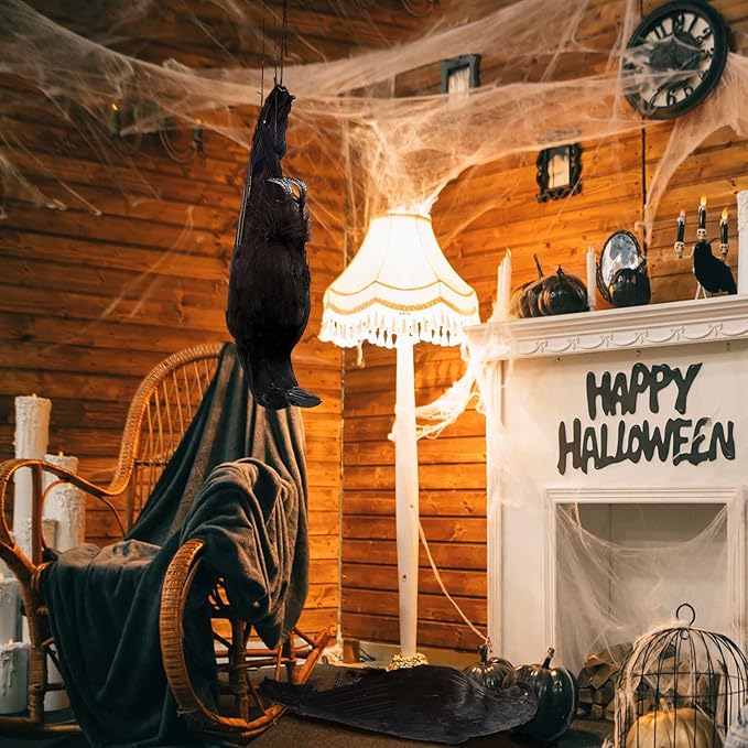 - Package Contents: our fake dead crow set includes 4 pieces of fake black crows, which look like the real thing and set off a scary atmosphere; If you are looking for the right Halloween decoration, it will be worth your choice; They help you create a creepy atmosphere for your home this Halloween season