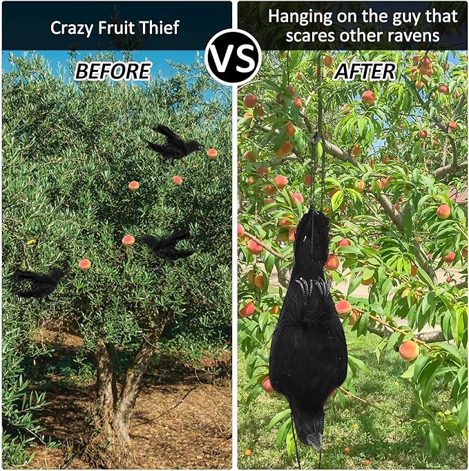 - Nice Material: these crow deterrent products are made of sturdy plastic body and beautiful feathers; They are well made, hard wearing and long lasting, easy for you to clean;These Halloween crow decorations look realistic; They are very eye catching and will surprise your guests when you put them on desks, trees, walls, and windows; The realistic black crows will create a Halloween atmosphere in your home