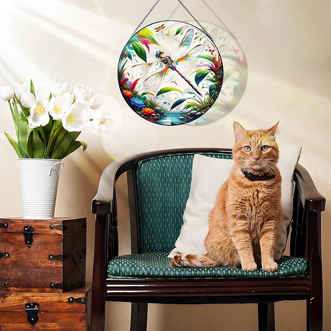 - Stained Glass Window Hanging Captivating Beauty: Our stained glass window hanging dragonfly showcases a mesmerizing blend of sun-through, casting enchanting shadows and creating a stunning kaleidoscope of colors on your window or wall. It serves as a perfect sun catchers indoor window decor, transforming your space into a vibrant and artistic sanctuary