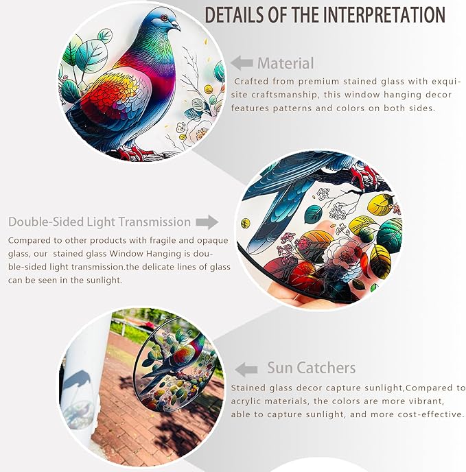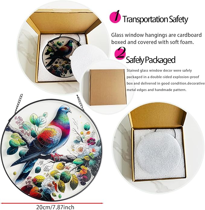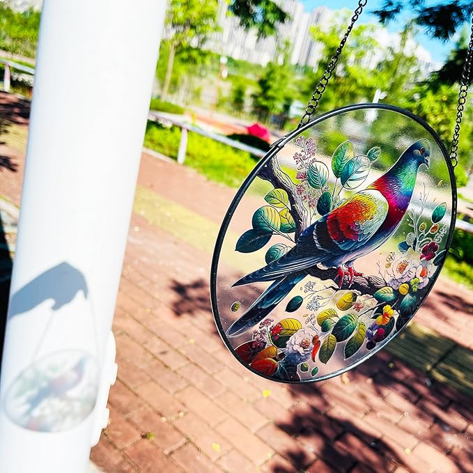 RIVEENY Stained Glass Window Hangings,8" Suncatcher Stained Glass Window Panels,Stained Panel Hangings Gift Women Girls Thanksgiving Birthday Gifts for Mom Grandma (Pigeon)
