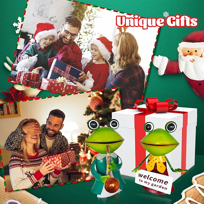 - 【Metal Frog Outdoor Decor】The metal frogs garden decor for outside is made of high-quality iron, rust-proof with eco-friendly paint, suitable for indoor and outdoor. 3D design makes it look more realistic&vivid, they can be placed not only on the lawn, but also in the yard or flower bed, add the festival atmosphere during holiday