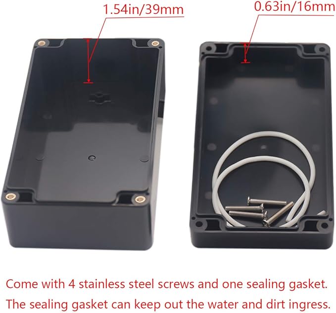 - 【Waterprof Box Size】- Outer size of the Electrical Box: 6.22"x3.54"x2.36"(158 x 90 x60 mm); Inner size of the Electrical Box:5.94" x3.27" x 2.17" (151 x83 x55mm)