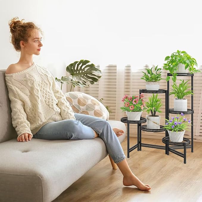 - Unique Modern Style Holder: The 6 tier plant stand is designed with a unique spiral tiered structure that can hold up to 6 pots without blocking each other, so that each of your plants can fully enjoy the sunlight. Modern and classic in style, this outdoor plant stand is perfect for decorating balcony, porch, garden, patio, window and office.