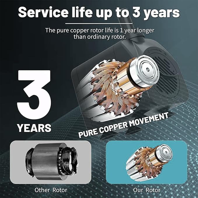 - 【ULTRA-QUIET DESIGN & LONG LIFE】In order to keep the pump quiet and have a longer life, increased the cost by using high quality rotor and 100% pure copper,make the pump quiet & long life.