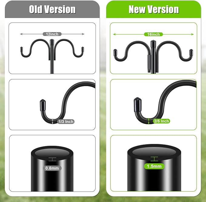 - PREMIUM QUALITY: The heavy duty steel make garden hook not easy to bend and deform when encountering strong winds. Powder coated prevents rust effectively and makes it more durable. Retro shape and classic black look of the hummingbird feeder pole outside add beauty and elegance to your garden. Simple design make the premium mental hooks easier to integrate into the garden scene, and can be match with more hanging items